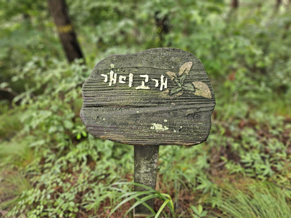 시계탑부터는 아주 평이한 능선길이 펼쳐집니다. 그래서 맨발걷기를 시계탑에서 시작하는 분들이 많으신가봐요. 15분 정도 열심히 걸으면 덕음봉이 나옵니다. 덕음봉은 안내 표지판도 없고 나무 벤치만 하나 덩그러니 놓여 있는 곳인데요. 조금 지나치시면 개미고개가 나옵니다.